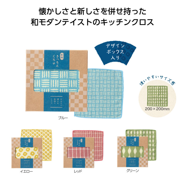 窓からのぞく和モダンデザイン柄がオシャレ、使い分けもしやすい3枚組のキッチンクロス。キッチンだけでなく様々な場所で使えます。