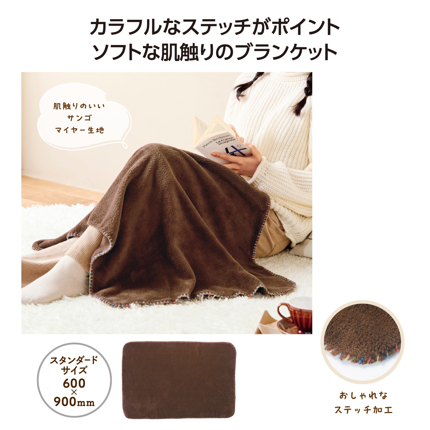 カラフルステッチふんわりブランケット