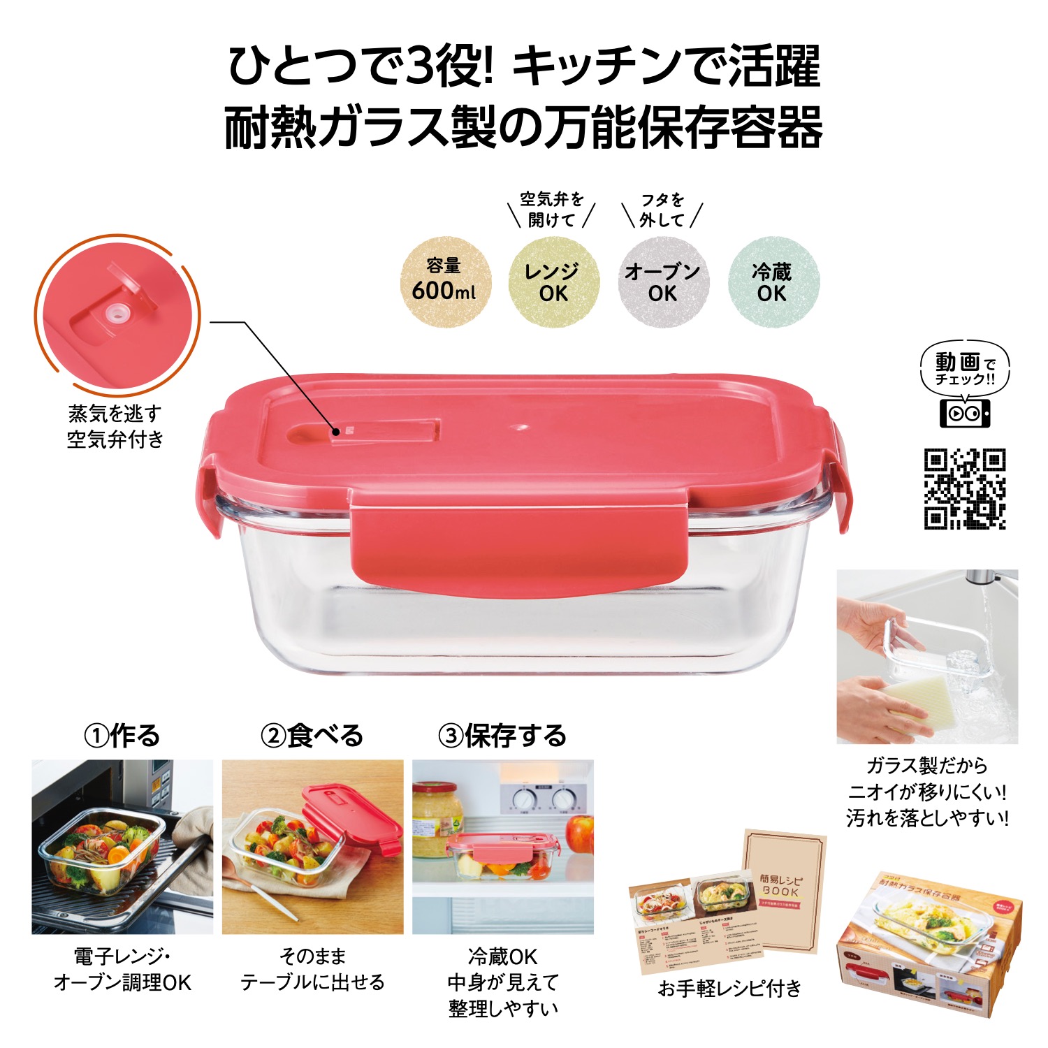 フタ付耐熱ガラス保存容器
