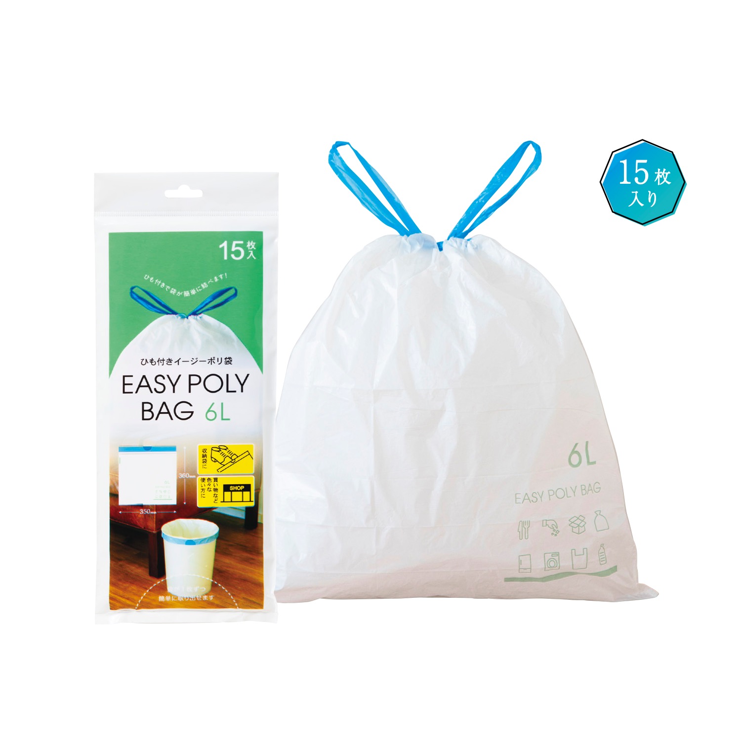 ひも付きイージーポリ袋6L用 15枚入