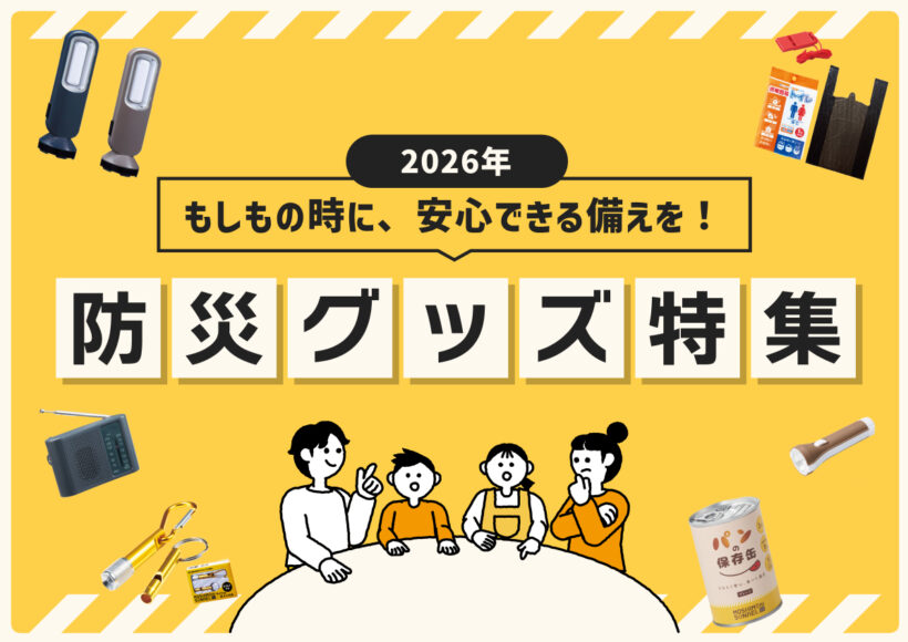 非常食や飲料水、ライト、応急手当キットなど、いざという時に役立つグッズが満載です。